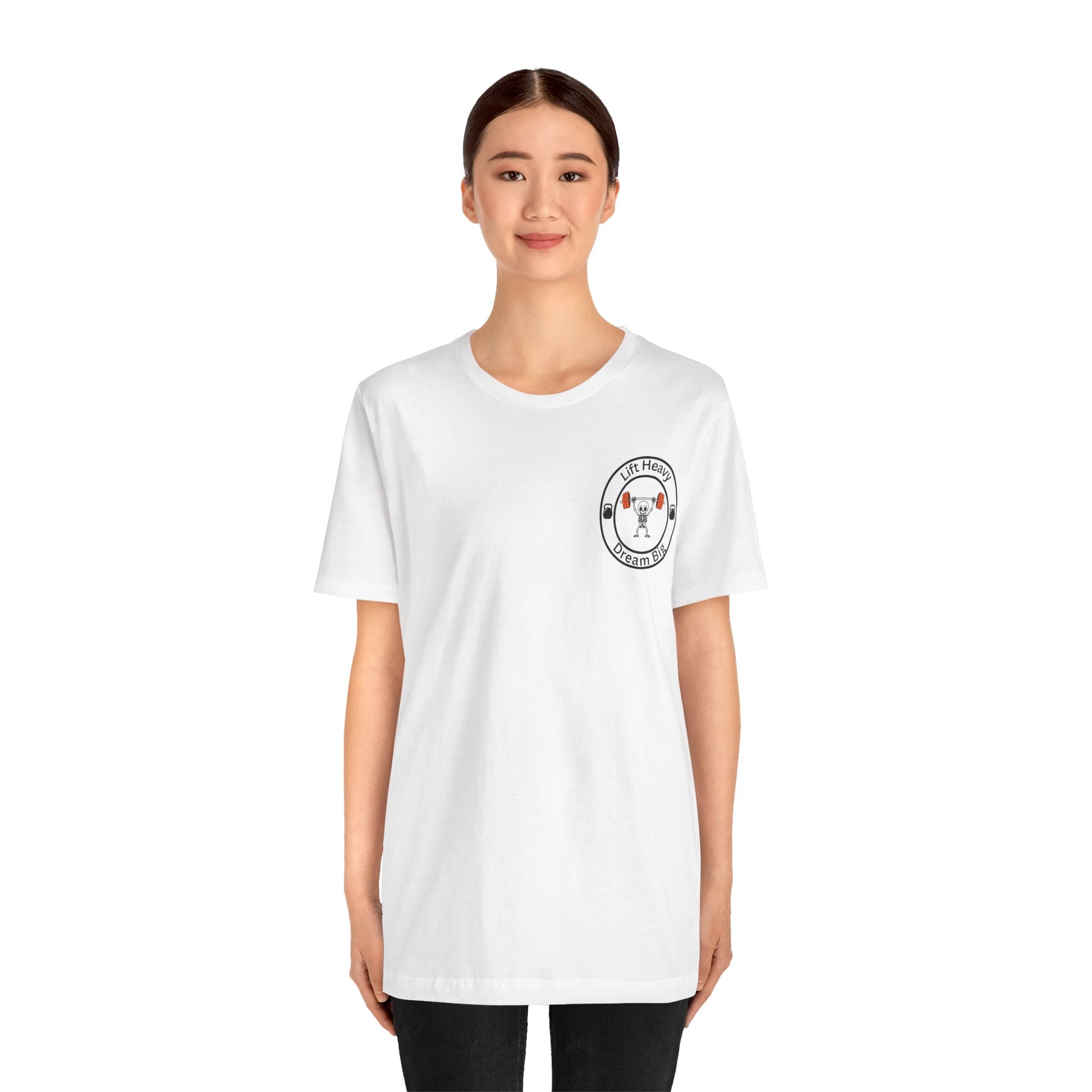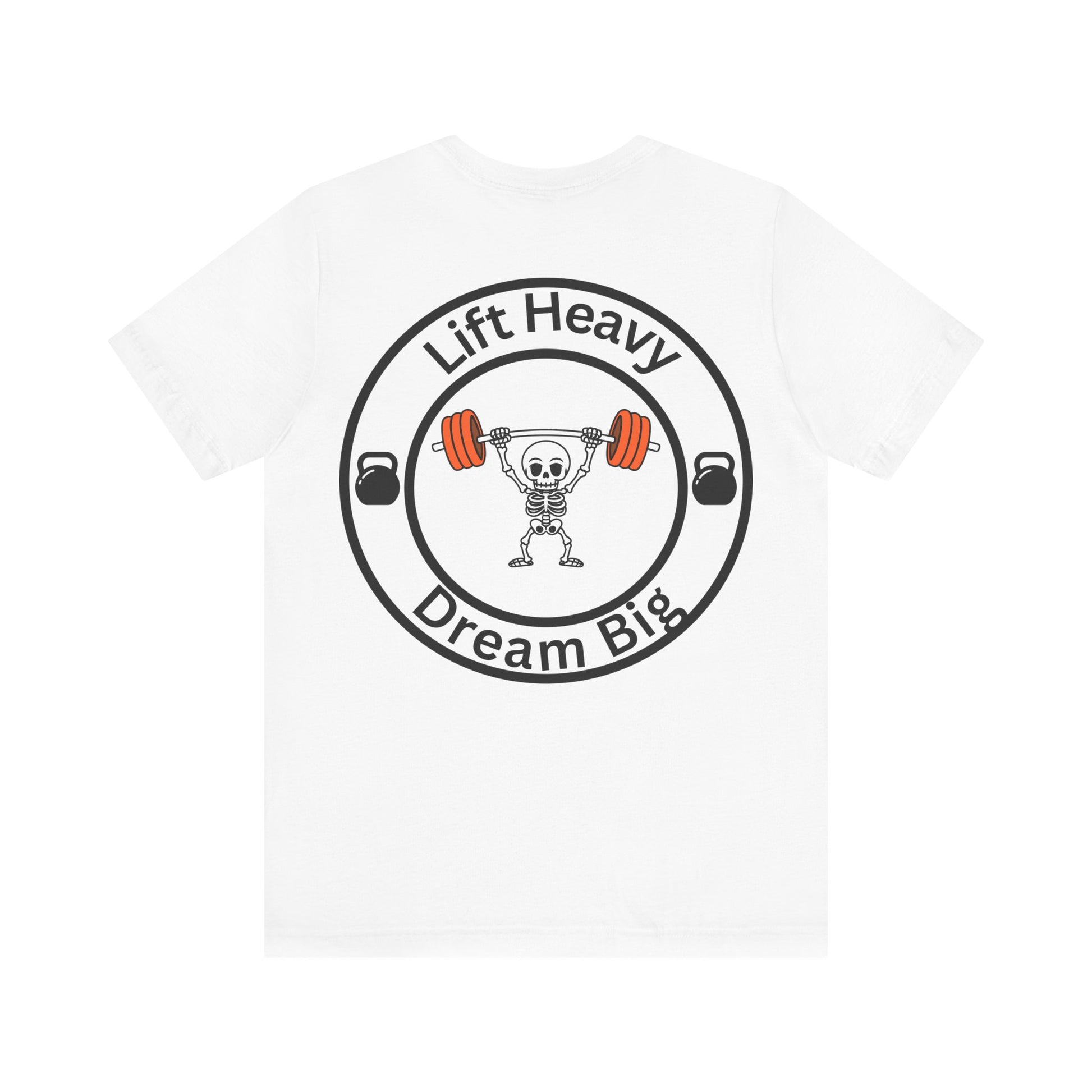 A comfortable unisex jersey T-shirt with the motivational text 'lift heavy dream big'. Perfect for fitness enthusiasts and those who believe in setting big goals. Ideal for casual wear, workouts, or as a daily reminder to stay motivated. Relevant for gym-goers, athletes, and anyone pursuing their dreams.