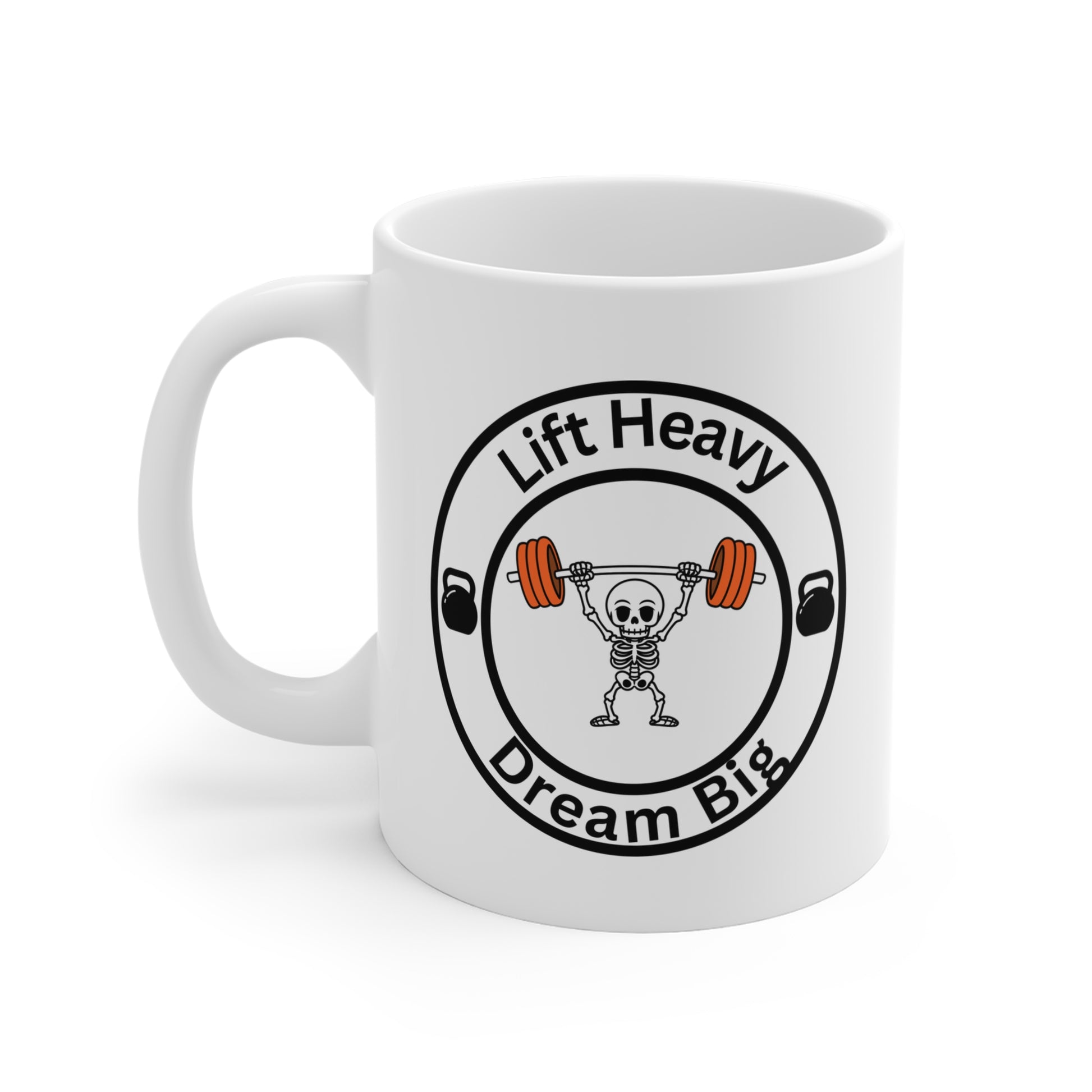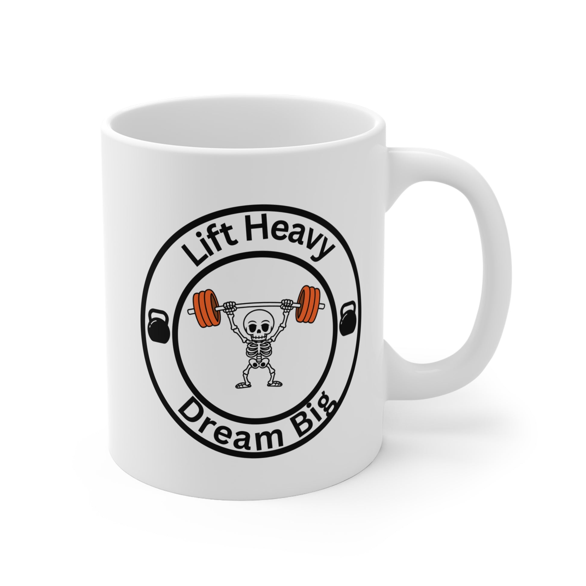 A stylish 11oz coffee mug featuring the motivational phrase 'lift heavy dream big' on both sides. Perfect for fitness enthusiasts and dreamers alike, this mug is a great addition to your morning routine or a thoughtful gift for someone special. Ideal for birthdays, New Year's resolutions, and any occasion that calls for motivation and inspiration.